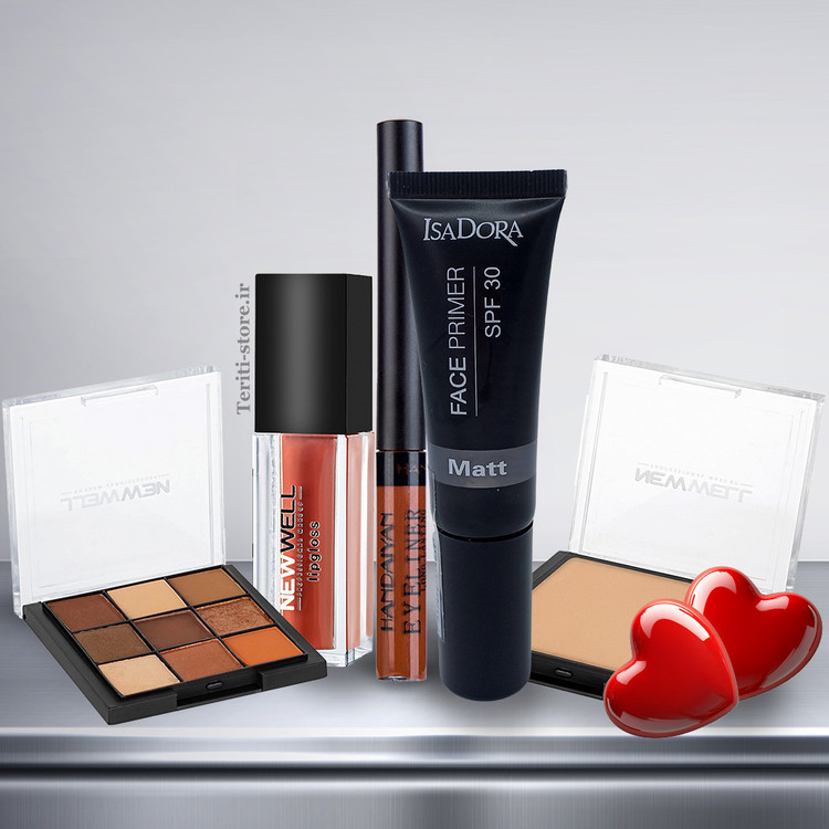 کیف آرایشی و دئورول کلابر برند شی ، آینه کیفی برند شی،بیوتی بلندر صورتی ، خط چشم سرخابی برند هندایان ،لاک زرد تونایت ،برق لب شاین دار تیوپی زرد بوسوم